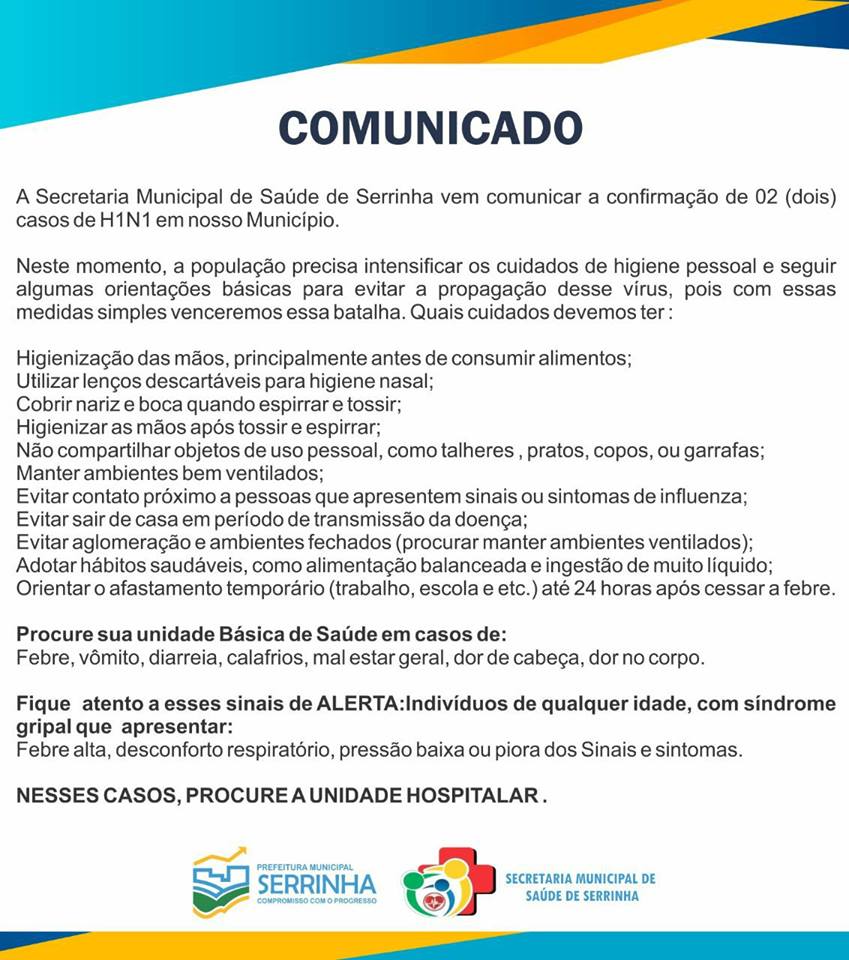 NOTA DE ESCLARECIMENTO sobre casos de h1n1 no município