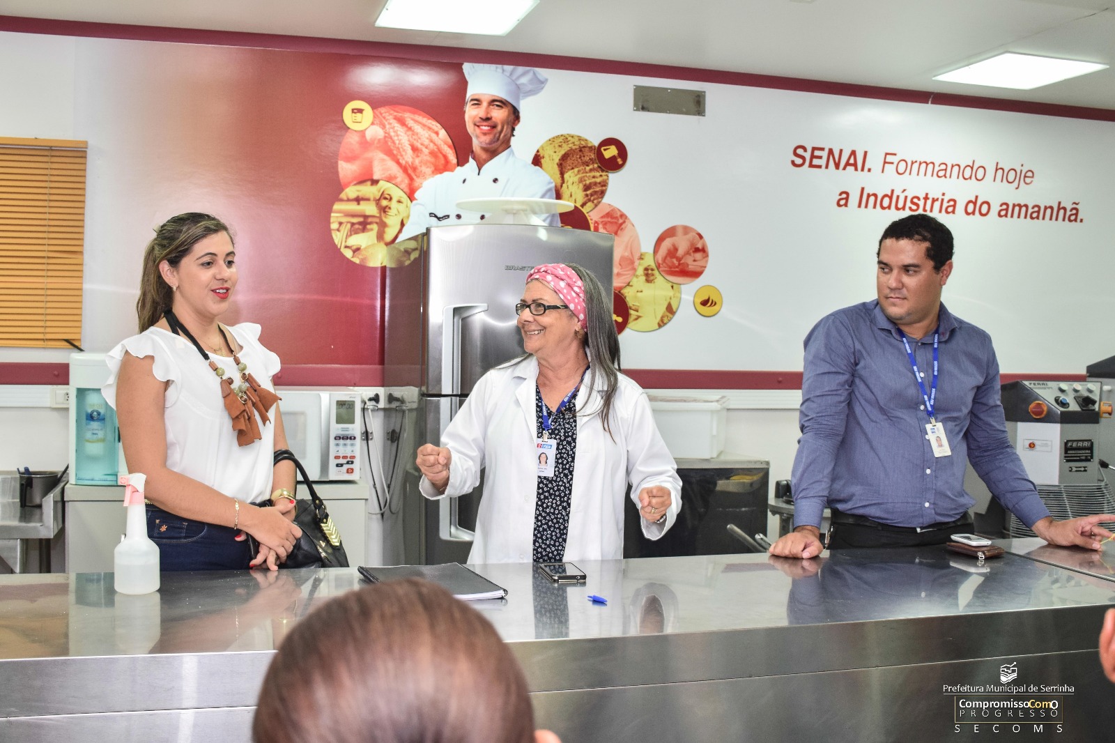 No último dia 20/03 a secretária de ação social Adriana Melo e a primeira dama Marcele Lima por meio de um ato de apresentação pública da Unidade Móvel junto com o representante do SENAI Levi Costa recebeu alguns empresários e colaboradores do ramo alimentício na Unidade Móvel de Panificação com o objetivo de mostrar os equipamentos, metodologia assim como o perfil que cada aluno sairá ao final de cada curso.
