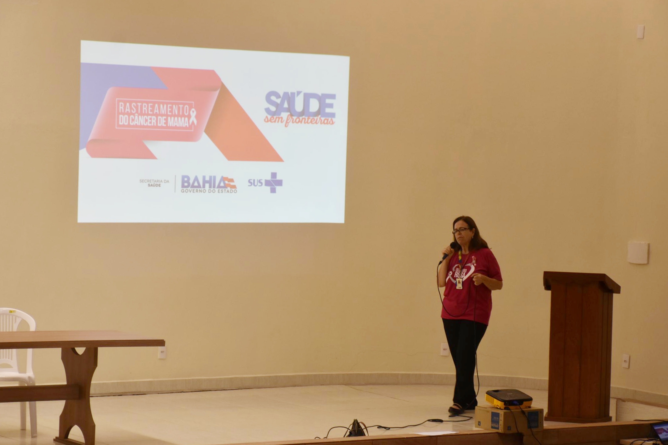 No último dia 17, em evento realizado no Auditório Santo Alessandro, bairro da Estação, nesta cidade, esteve presente a Sra. Fátima Tanajura, Enfermeira da SESAB, responsável pelo Programa Estadual de Rastreamento Câncer de Mama.
