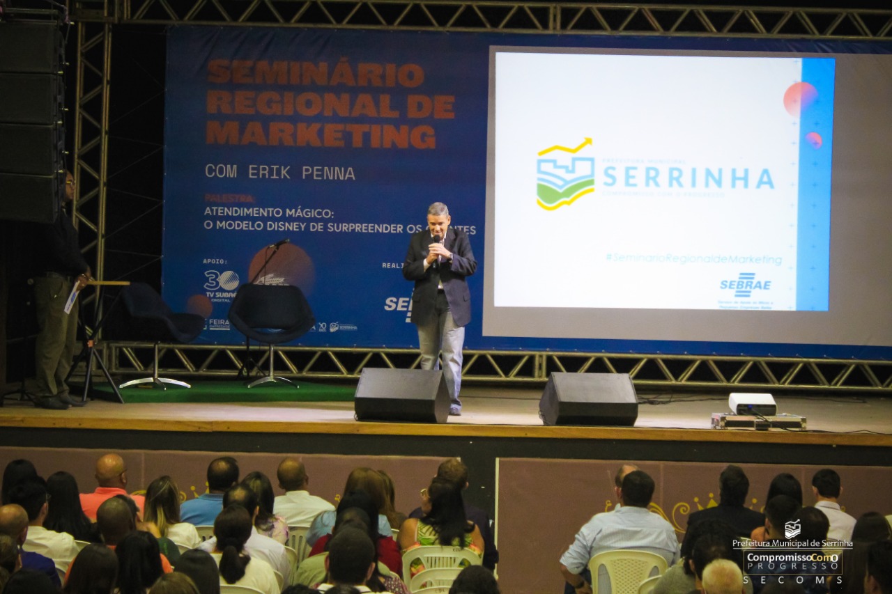 Com a casa de eventos Palmeira Hall lotada, Serrinha recebeu um dos maiores eventos de marketing da atualidade: o Seminário de Marketing Atendimento Mágico, do palestrante internacional Erick Pena. Um evento que teve total apoio da Prefeitura de Serrinha, através da Secretaria Municipal de Desenvolvimento Econômico e Serviços Públicos.